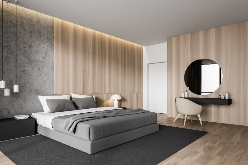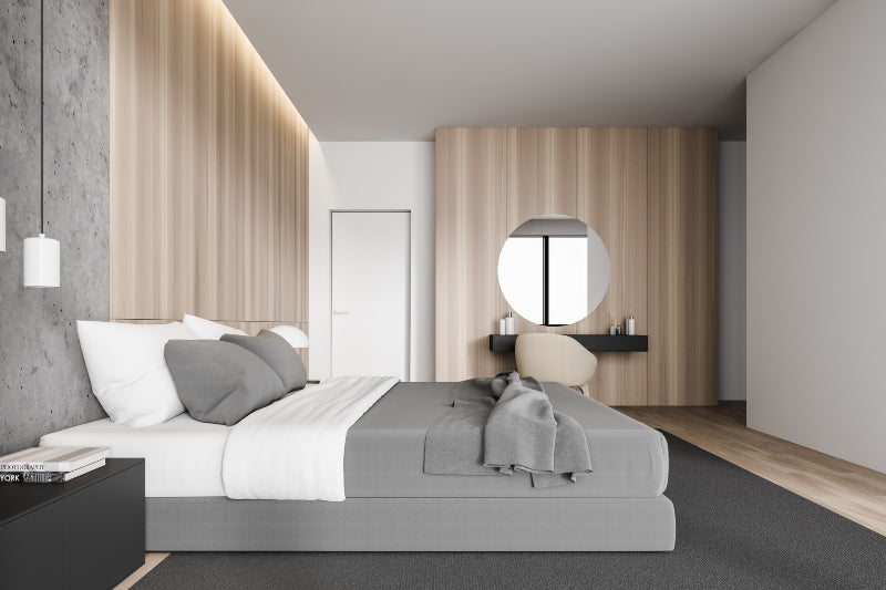 – מראה רגוע, חף מדרמה, שמתאים לקצב של חדר שינה – אידיאלי בשילוב בטון, טיח מינרלי, או ריהוט בגוון שחור גרפי
