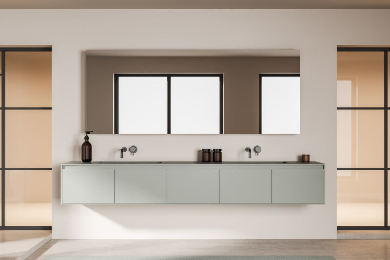 – כיורים אינטגרליים או מונחים, ומשטחי שיש בגוונים ניטרליים