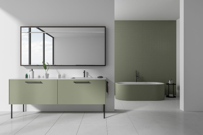 – שידות רחצה תלויות או עומדות בגווני ירוק בהיר או זית