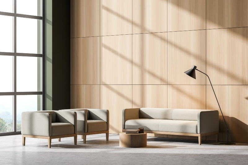חיפוי קיר עץ בגוון טבעי בהיר מאוד, עם לוחות חלקים ונקיים המעניקים לחלל תחושת פתיחות, סדר ורכות.