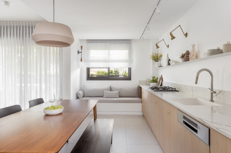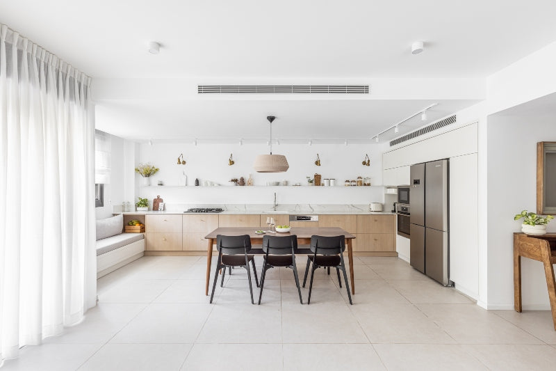 מטבח בקו מינימליסטי ונעים, שתוכנן לבית רחב ידיים במרכז הארץ.