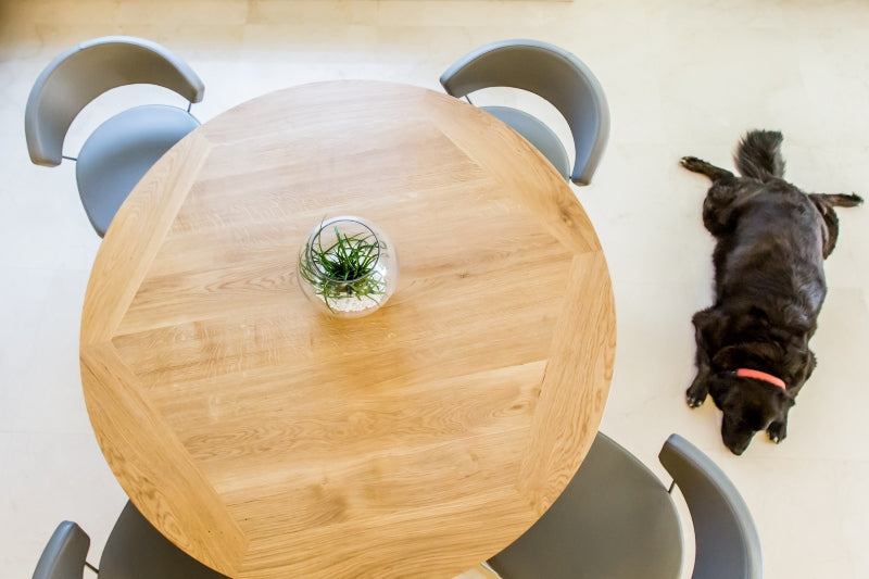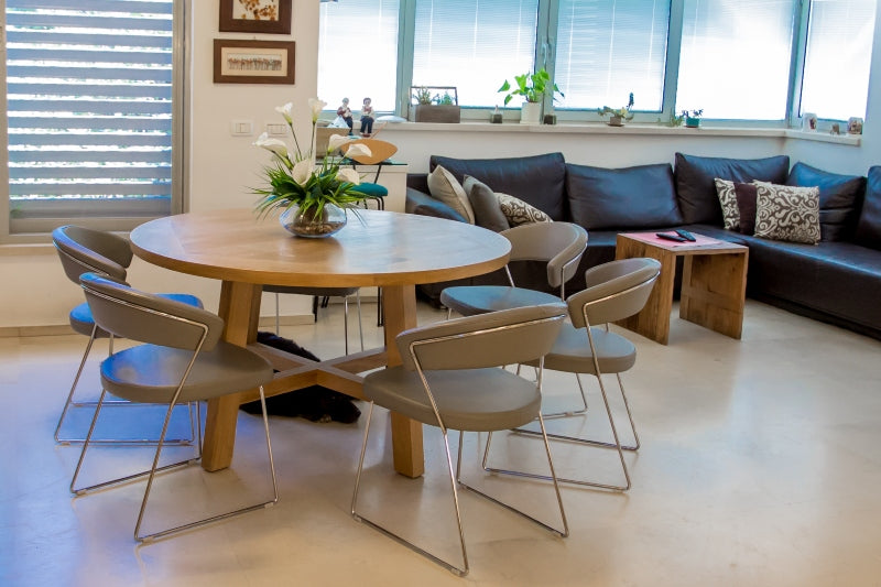 השולחן הזה נבנה עבור משפחה אהובה בסביון, שהזמינה בעבר כמה עבודות נגרות מיואב — וביקשה הפעם שולחן שישמש כמרכז חיים: מקום לארוחות יומיומיות, לאירוחים, לשיחות של שבת בצהריים.הבקשה הייתה ברורה: שולחן עגול, נעים, עמיד, עם נוכחות שקטה.